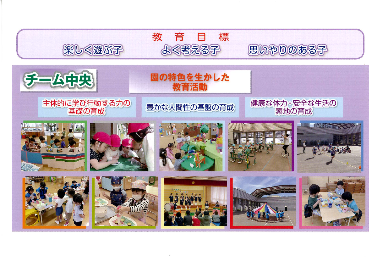 人間尊重の精神に基づき、心身ともに健全で知性と感性に富み、人間性豊かで主体的に学ぶ幼児の育成を目指して、次の教育目標を設定します。
